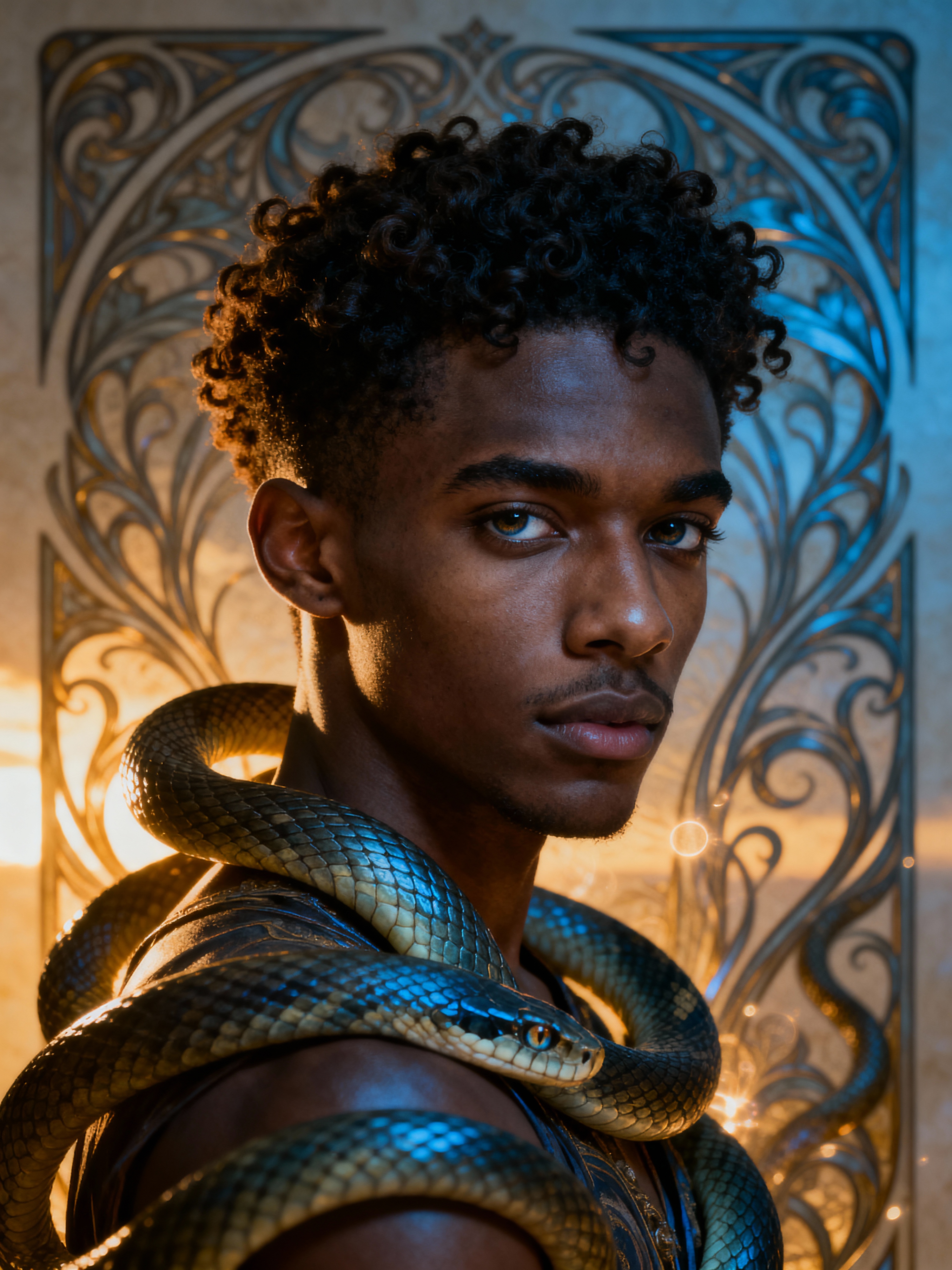 model with coiled serpents beautiful detailed romantic art nouveau of a model by alphonse mucha, kay nielsen, yoshitaka amano, and gustav klimt, hauntingly beautiful refined moody dreamscape