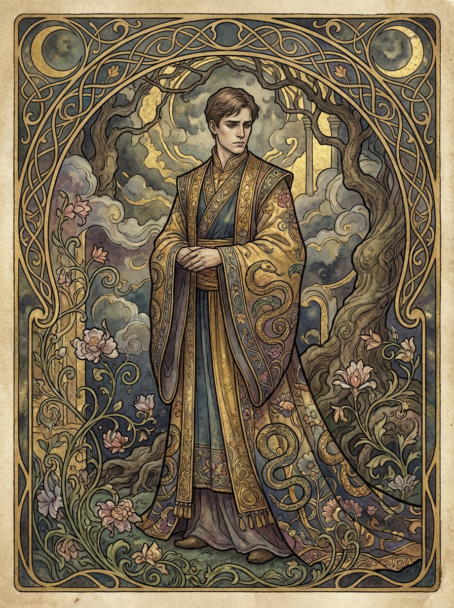 model with coiled serpents beautiful detailed romantic art nouveau of a model by alphonse mucha, kay nielsen, yoshitaka amano, and gustav klimt, hauntingly beautiful refined moody dreamscape