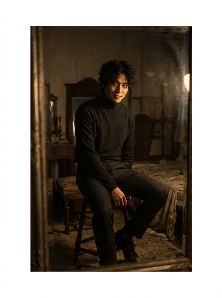 model with mysterious alluring expression, artistic portrait lighting, creative composition
