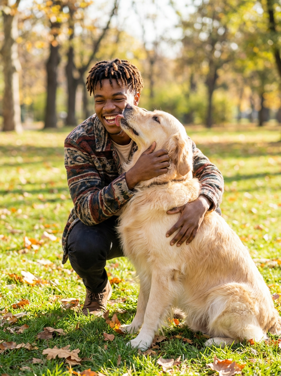 model with pet, animal lover vibes, genuine happy interaction, home or park setting