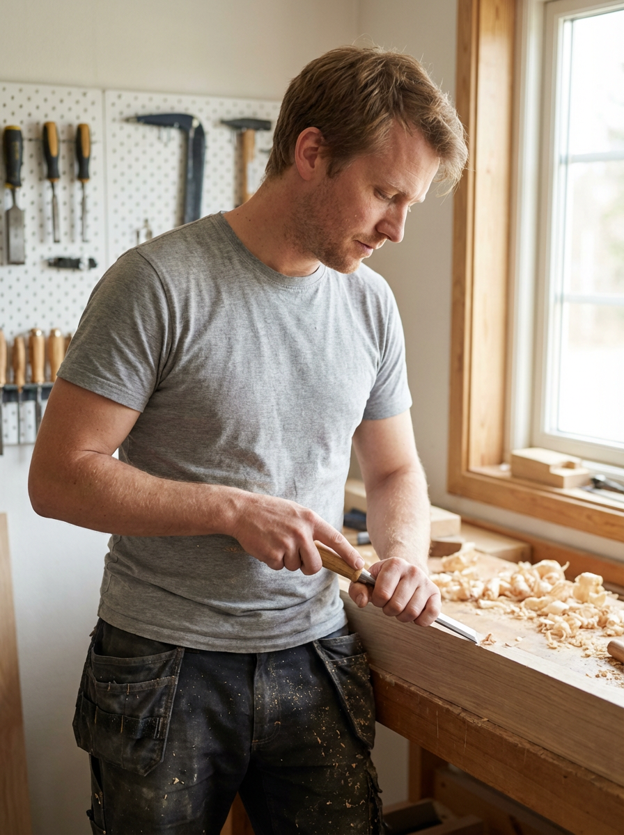 masculine model engaging in a hobby or craft