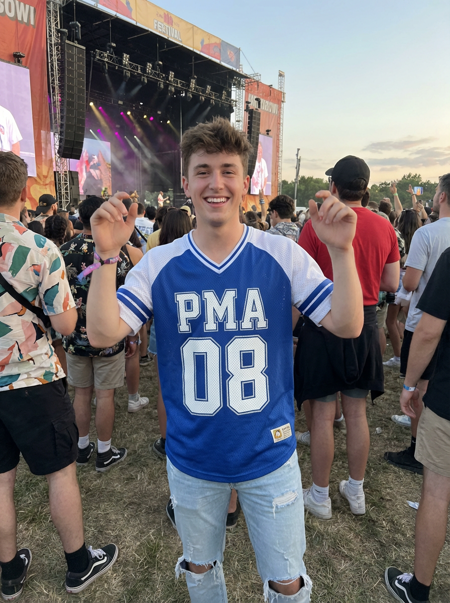 masculine model enjoying a concert or music festival