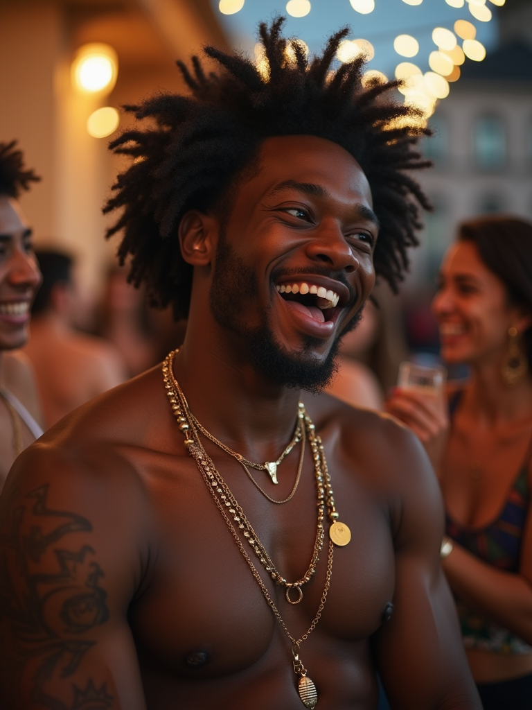 masculine model laughing and hanging out with friends