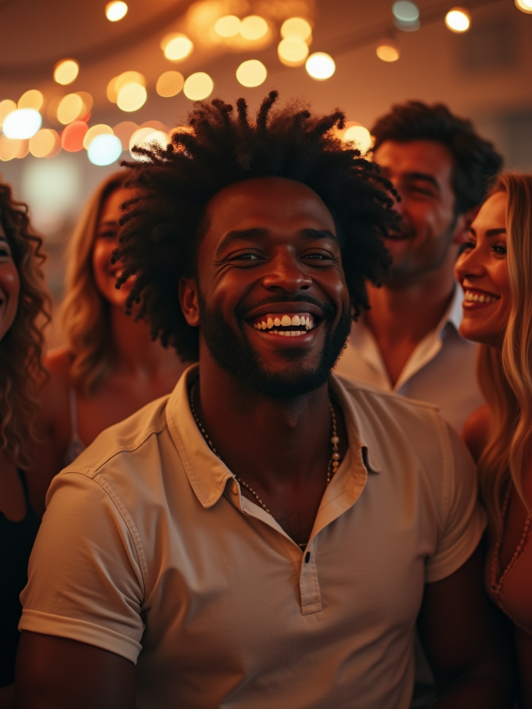 masculine model laughing and hanging out with friends
