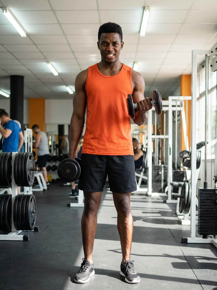 masculine model wearing or shorts and sports top in the fitness gym