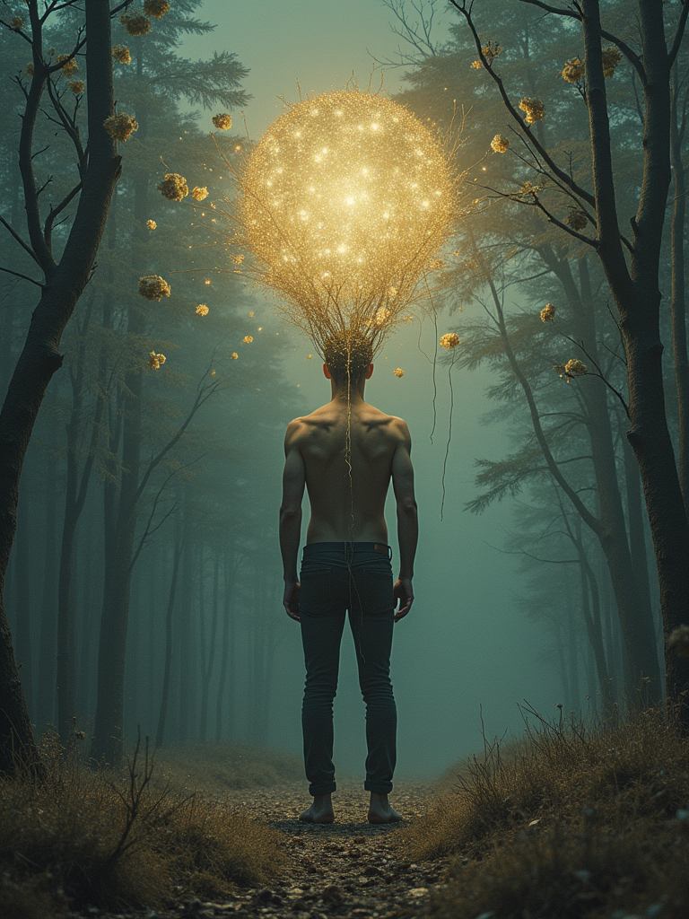 Model as a surrealist art portrait. Impossible perspectives, magical atmosphere. Dali-inspired style.