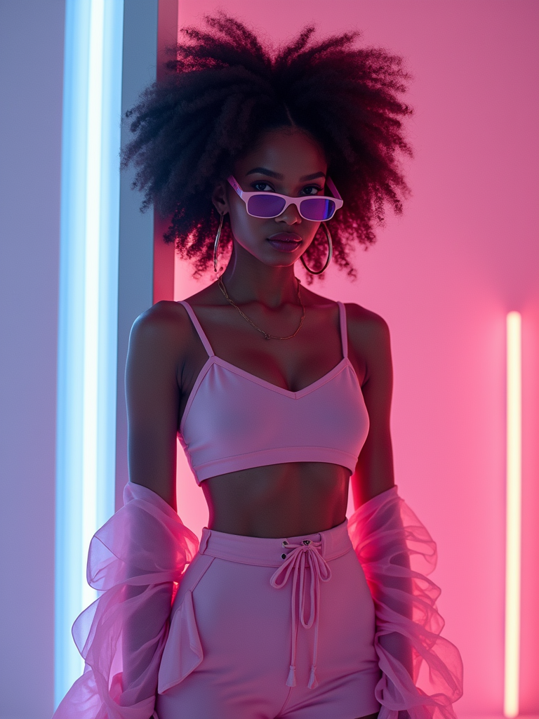 Model as a vaporwave E-Girl aesthetic, dreamy lighting, soft neon glow. Wearing a pastel aesthetic outfit, subtle anime influence . Soft dreamy effect.