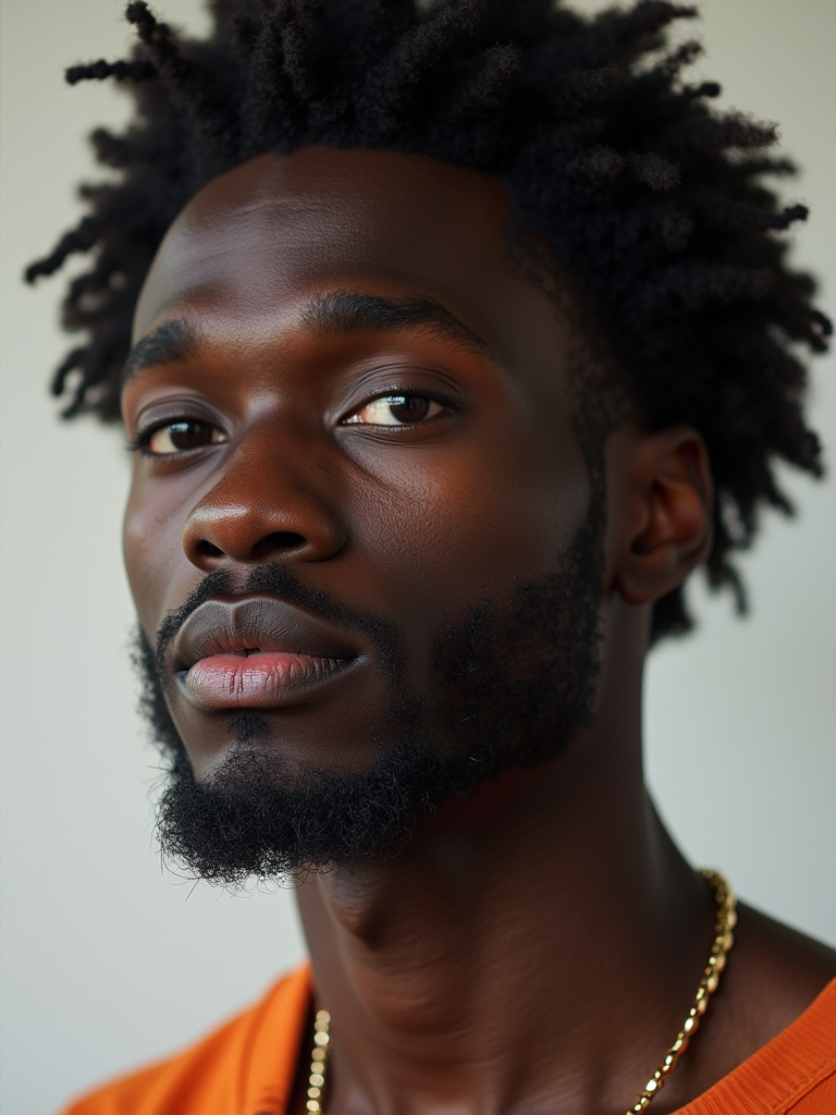 Model reimagined as a modern art portrait. Creative composition, modern aesthetic. Museum exhibition quality.