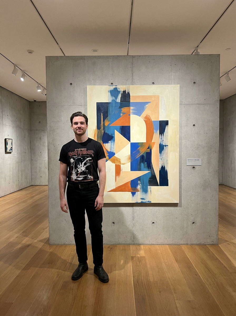 Model reimagined as a modern art portrait. Creative composition, modern aesthetic. Museum exhibition quality.