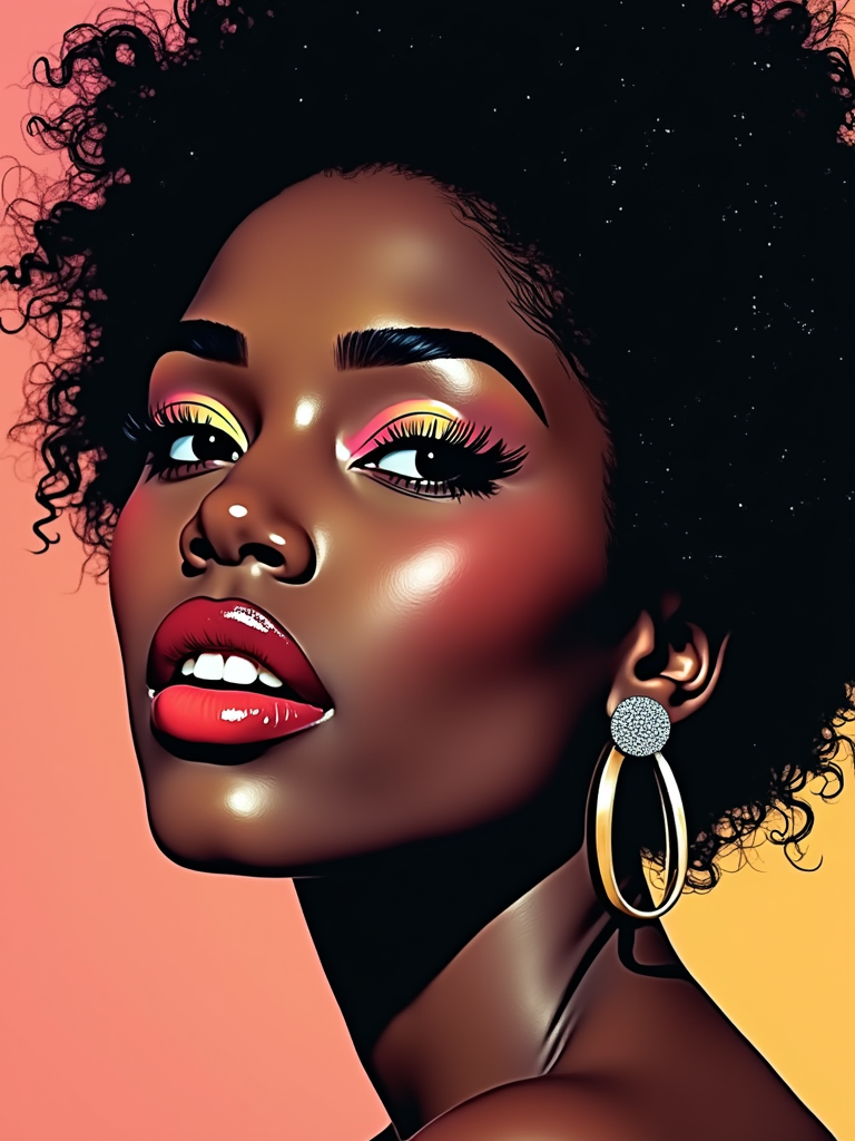 Model reimagined as a pop art portrait. Bold colors, graphic style . Andy Warhol inspired, vibrant palette.