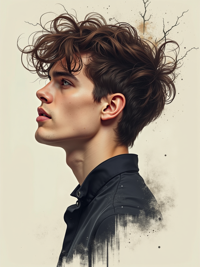 Model transformed into a contemporary illustration. Creative style, modern aesthetic. Professional illustration.