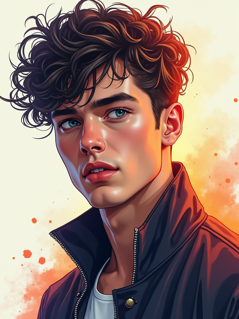Model transformed into a contemporary illustration. Creative style, modern aesthetic. Professional illustration.