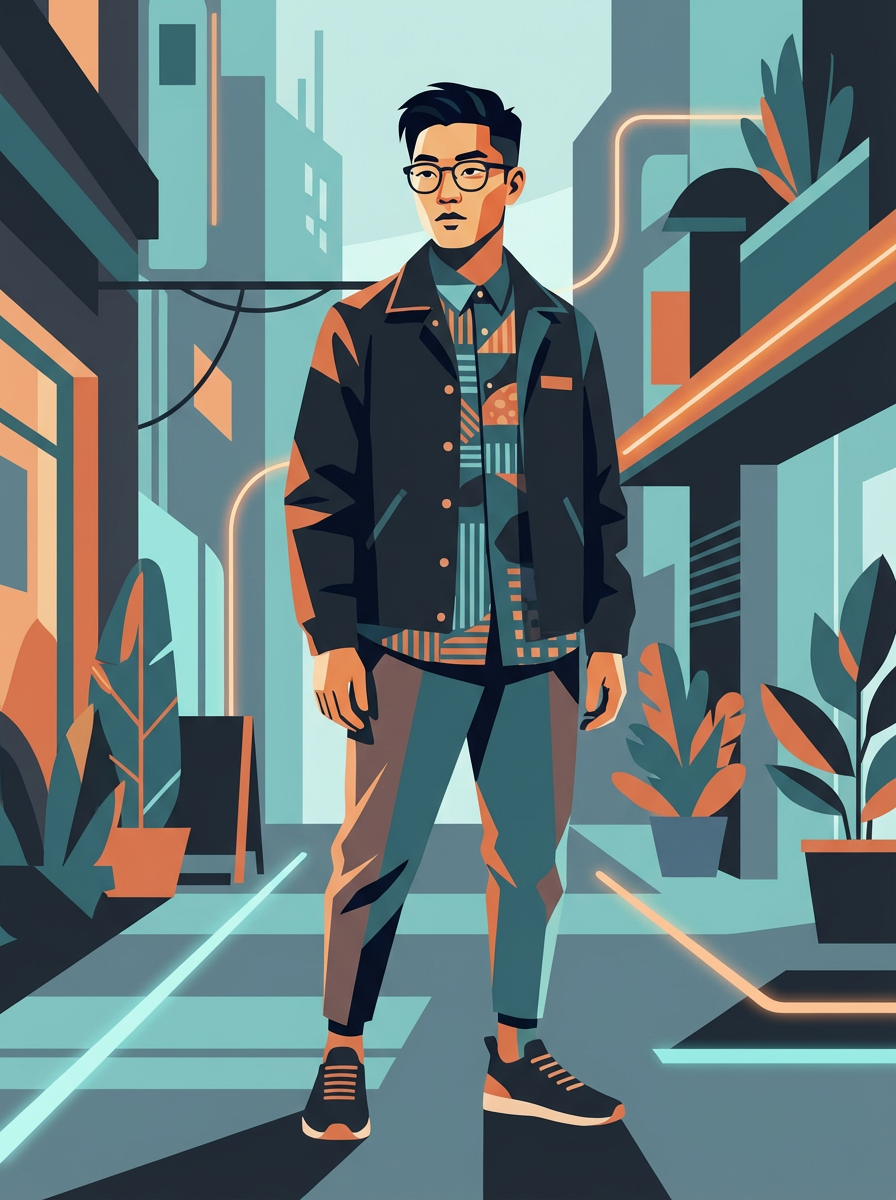 Model transformed into a contemporary illustration. Creative style, modern aesthetic. Professional illustration.