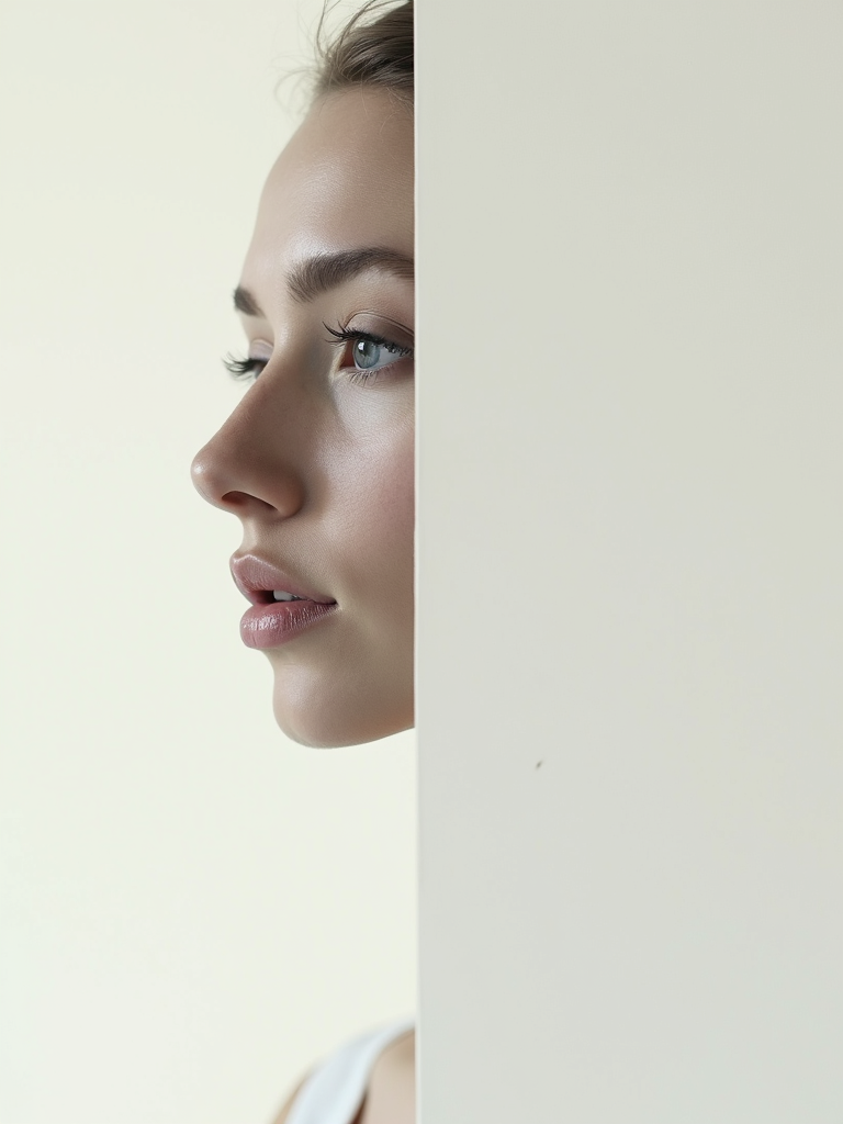 Model transformed into a minimalist art piece. Clean lines, simple composition . Modern minimalist style.