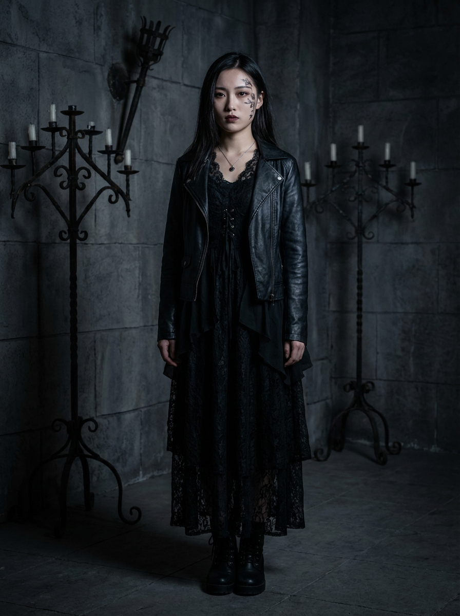 Model with a face tattoo portrait. Subtle design under the eye, gothic aesthetic . Dark moody lighting.