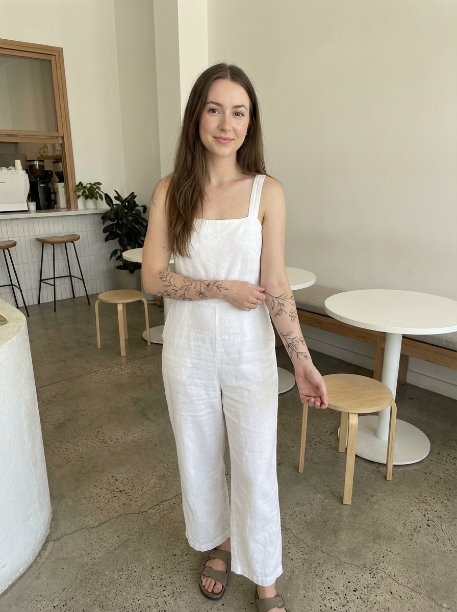 Model with a minimalist fine-line tattoos on the arm and wrist. Elegant floral design wrapping around the forearm . Subtle and stylish body art.