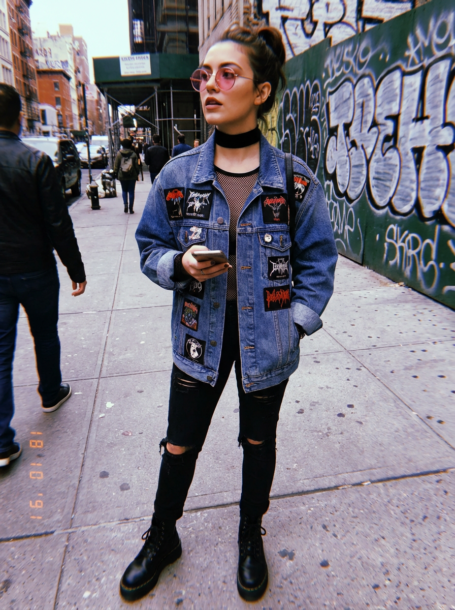 Model with alternative fashion, edgy attitude, street photography vibes. Pink-tinted glasses, dark choker, expressive pose . TikTok and Instagram style.