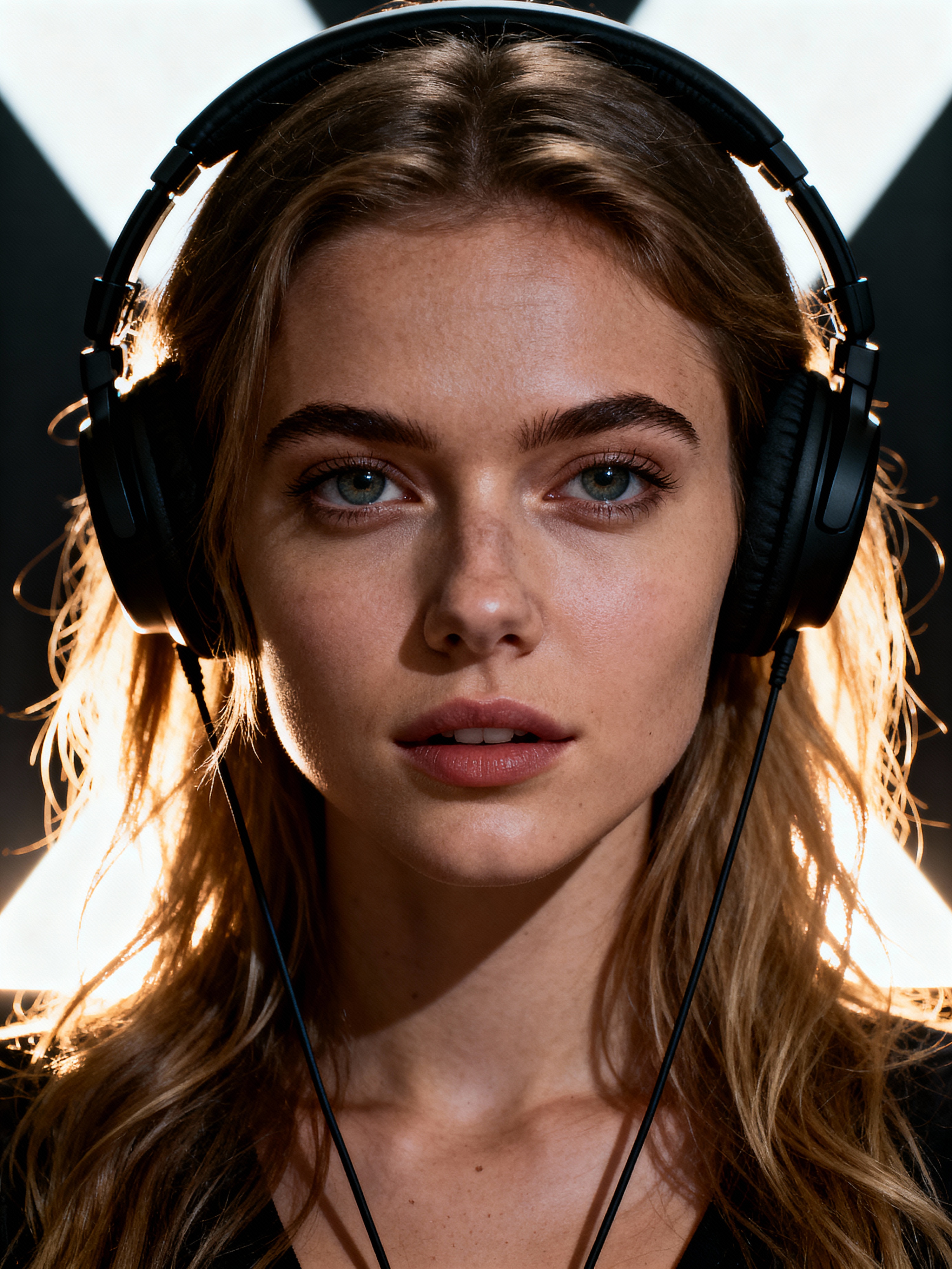 music-enthusiast feminine model relaxing with headphones, exploring new tunes