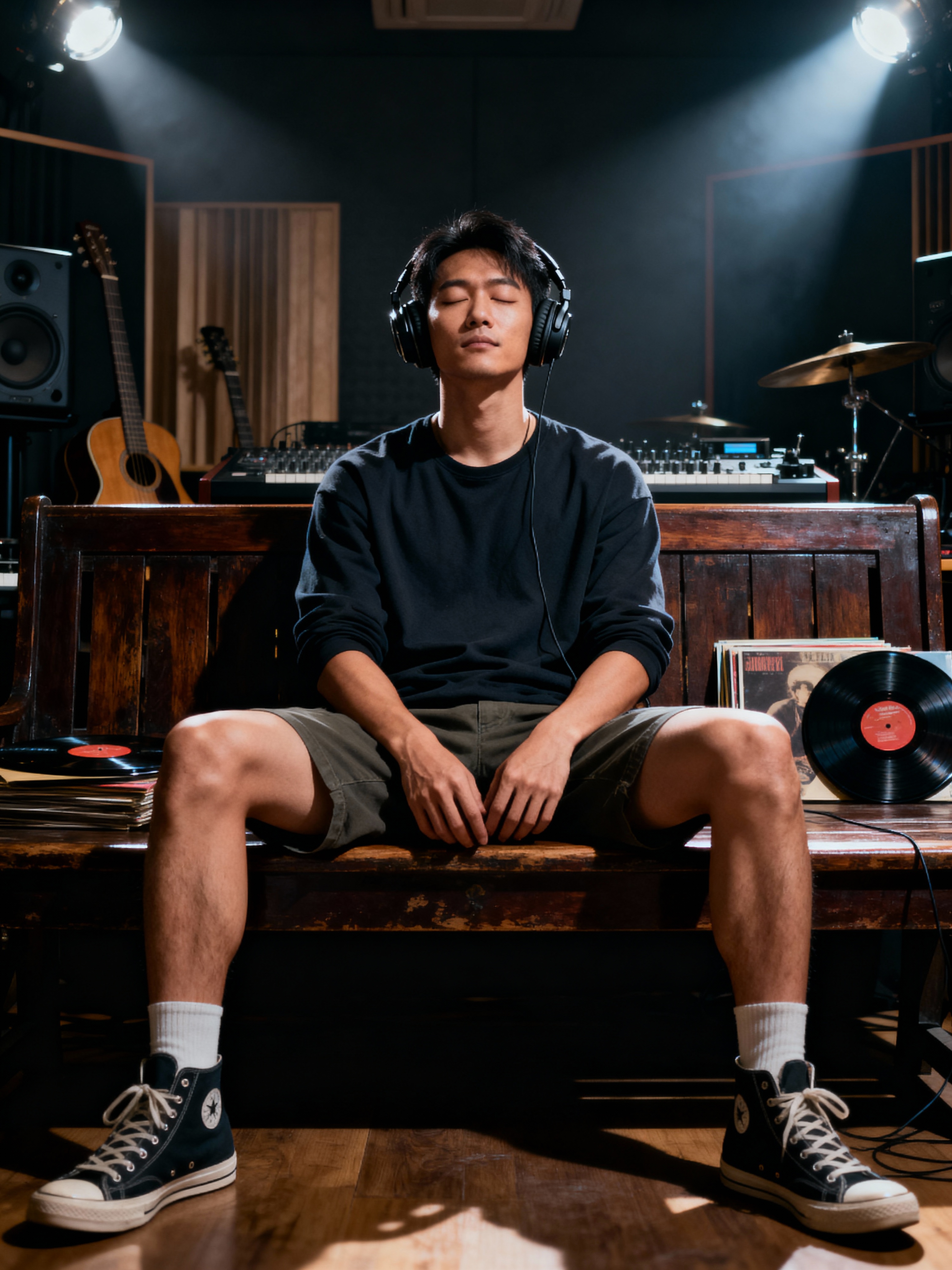 music-enthusiast masculine model relaxing with headphones, exploring new tunes