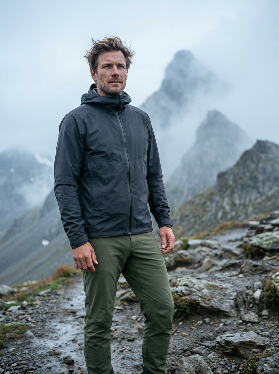 {"Objective": "Create a cinematic, ultra-realistic outdoor portrait inspired by premium Scandinavian outdoor brand campaigns.", "Subject": {"Gender": "Male", "Ethnicity_Style": "Scandinavian-inspired features", "Appearance": {"Facial_Details": {"Skin": "Realistic skin texture with visible pores", "Features": "Rugged, masculine facial structure"}, "Hair": "Natural hairstyle with wind blowing through it", "Expression": "Focused, calm, resilient"}}, "Wardrobe": {"Jacket": "Structured windproof technical outdoor jacket", "Pants": "Tapered athletic pants", "Style": "Minimalist, functional, performance-oriented"}, "Scene_Description": {"Setting": "Rocky mountain trail terrain", "Environment": {"Background": "Dramatic mountain fog and mist", "Atmosphere": "Cold, raw, natural Scandinavian wilderness"}}, "Lighting_and_Weather": {"Lighting": {"Type": "Natural cold daylight", "Quality": "Soft yet directional, overcast mountain light", "Effect": ["Natural contrast on face and clothing", "Soft shadows with realistic depth"]}, "Weather": "Windy, cool alpine conditions"}, "Camera_and_Composition": {"Camera": "Sony A7R V", "Lens": "50mm", "Aperture": "f/1.4", "Shot_Type": "Cinematic outdoor portrait", "Depth_of_Field": "Shallow depth of field with subject isolation", "Angle": "Eye-level or slightly low-angle for strength and presence", "Aspect_Ratio": "4:5", "Capture_Style": "RAW photography"}, "Visual_Style": {"Aesthetic": "Premium outdoor fashion campaign realism", "Resolution": "Ultra-high resolution, photorealistic", "Detail_Characteristics": ["Crisp fabric textures", "Natural hair movement", "Realistic atmospheric fog", "True-to-life color rendering"], "Color_Grading": "Clean, natural, cool-toned cinematic grading"}, "Constraints": {"Text": "None", "Logos": "None", "Artifacts": "No glitches, no distortions"}, "Output_Requirements": {"Format": "Image", "Quality": "Perfect realism, campaign-grade photography", "Use_Case": "Outdoor brand editorial / premium lifestyle campaign"}}