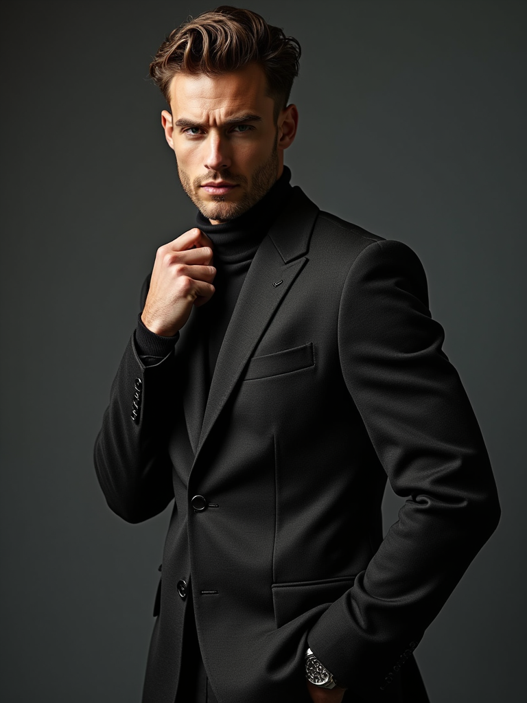 Professional fashion insanely beautiful model in a high-end studio. Wearing luxury fashion, confident insanely beautiful model stance. Editorial lighting, fashion magazine quality.