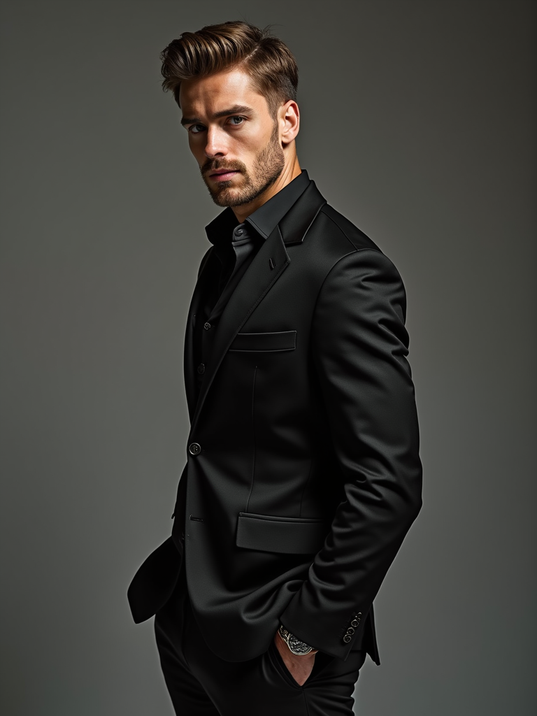 Professional fashion insanely beautiful model in a high-end studio. Wearing luxury fashion, confident insanely beautiful model stance. Editorial lighting, fashion magazine quality.