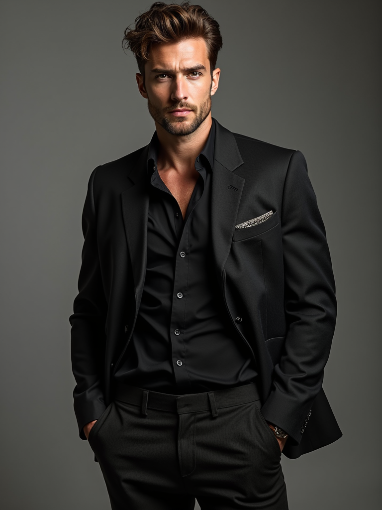 Professional fashion insanely beautiful model in a high-end studio. Wearing luxury fashion, confident insanely beautiful model stance. Editorial lighting, fashion magazine quality.