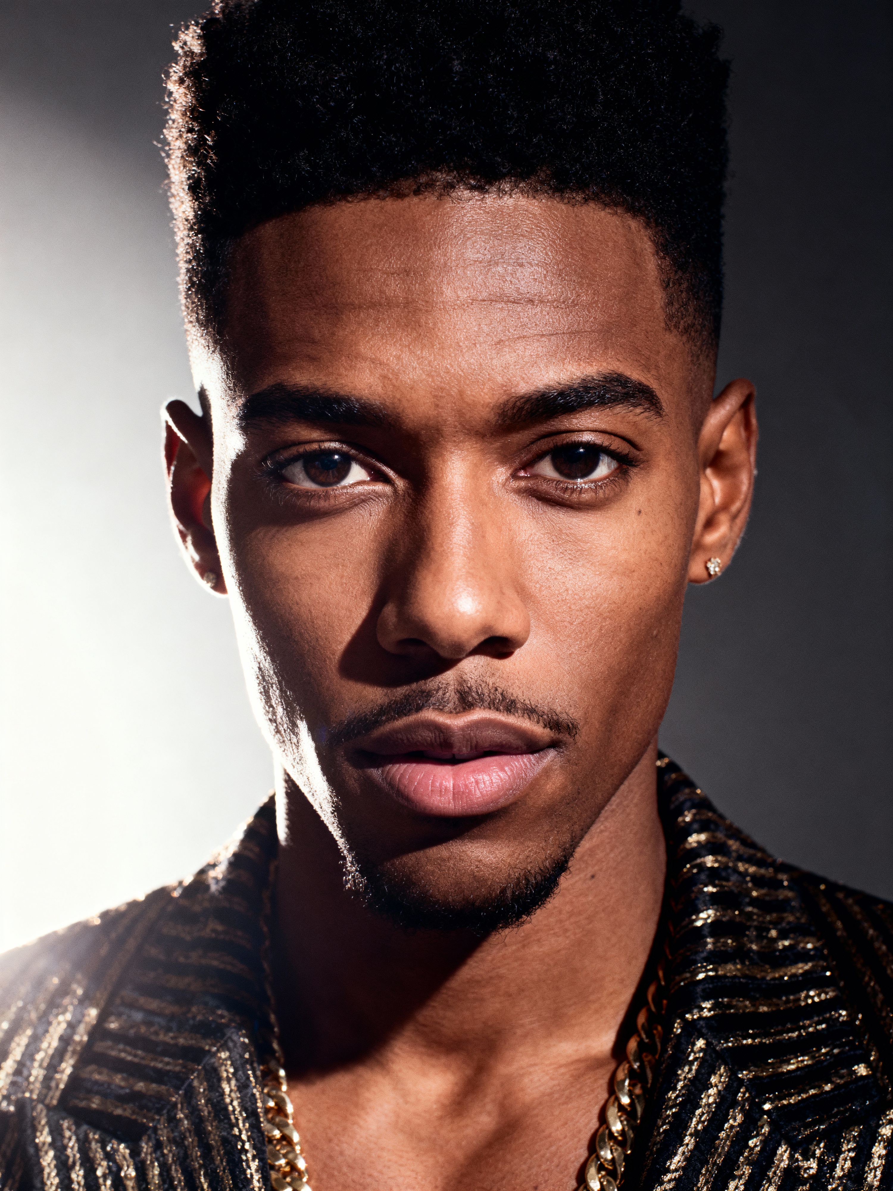Professional fashion insanely beautiful model in a high-end studio. Wearing luxury fashion, confident insanely beautiful model stance. Editorial lighting, fashion magazine quality.
