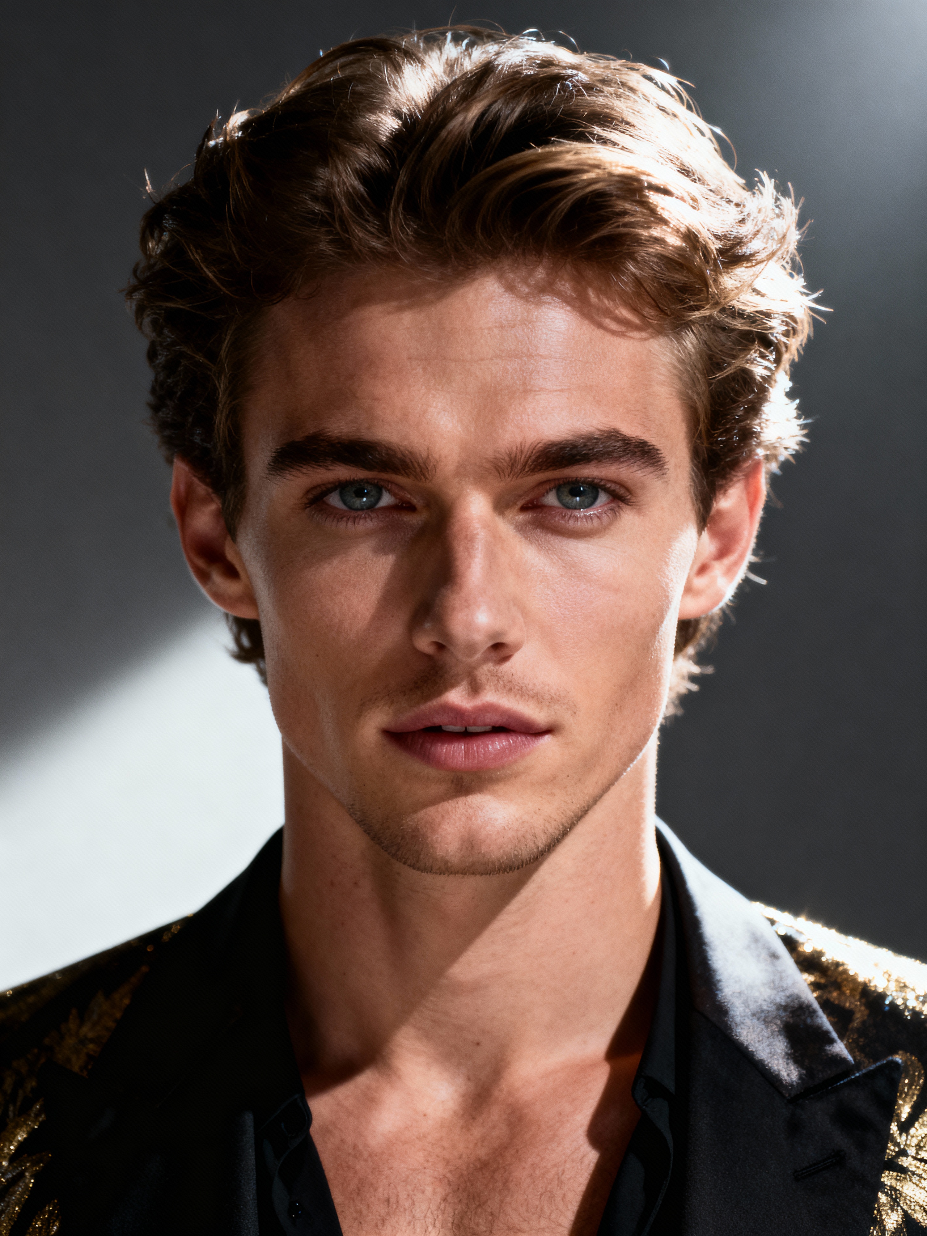 Professional fashion insanely beautiful model in a high-end studio. Wearing luxury fashion, confident insanely beautiful model stance. Editorial lighting, fashion magazine quality.