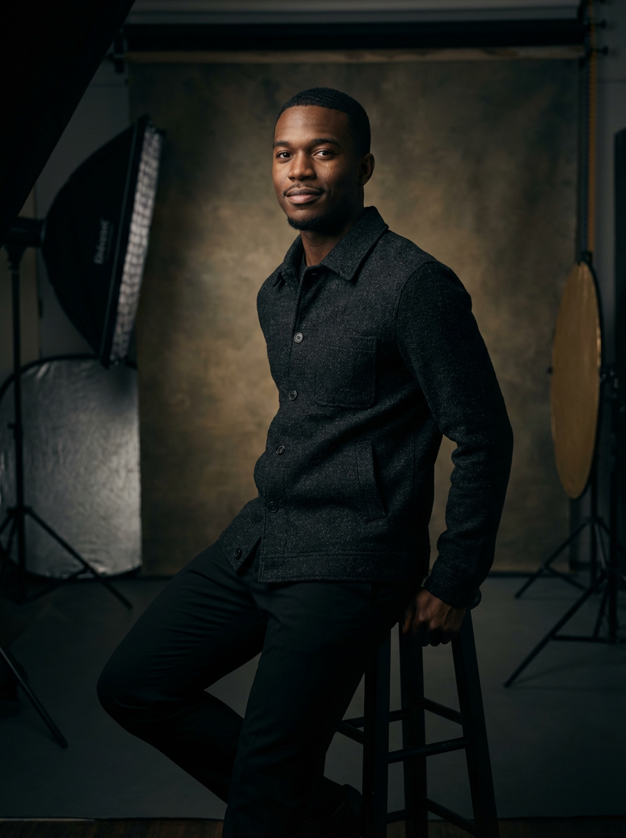 Sensual portrait of model with dramatic Rembrandt lighting. Intense gaze, confident expression. Studio lighting setup, artistic composition.