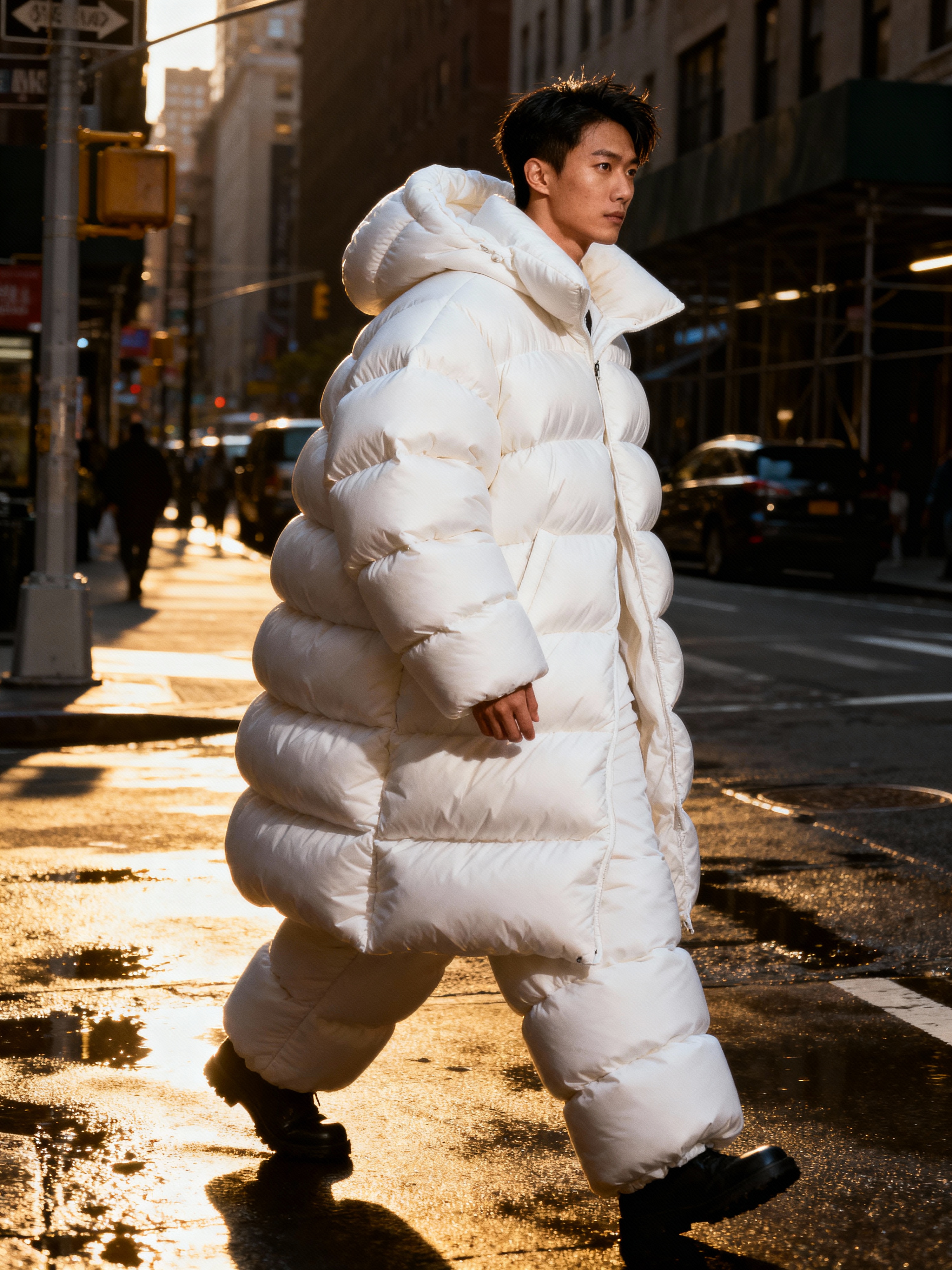 Related photosman in a super big round white puffer closed coat with an exaggerated, voluminous design with oversized hood and thick, many quilted sections that contribute to its inflated appearance. the coat is closed and inflated. man is walking outside in New York City street.side view of man in a super big round white puffer closed coat with an exaggerated, voluminous design with oversized hood and thick, many quilted sections that contribute to its inflated appearance. the coat is closed and inflated. man is walking outside in New York City street.side view of man in a super big round white puffer closed coat with an exaggerated, voluminous design with oversized hood and thick, many quilted sections that contribute to its inflated appearance. the coat is closed and inflated. man is walking outside in New York City street.woman, dimly lit upscale 1920s speakeasy, relaxed pose, fantasy, art deco, detailed painterly digital art style by coles phillips and alfred charles parker, πŸΈπŸ‹a woman wearing black bodycon dress  in luxury villa living room, instagram photo, instagram, hourglass figurewoman wearing Y2K aesthetic, 2000s fashion, aughts style, noughties style, grunge or 2000s style, oversized washed out style, baggy pants, low rise pants or cargo pants, crop top, Choker, Metallic, iridescent fabrics, posing for photo