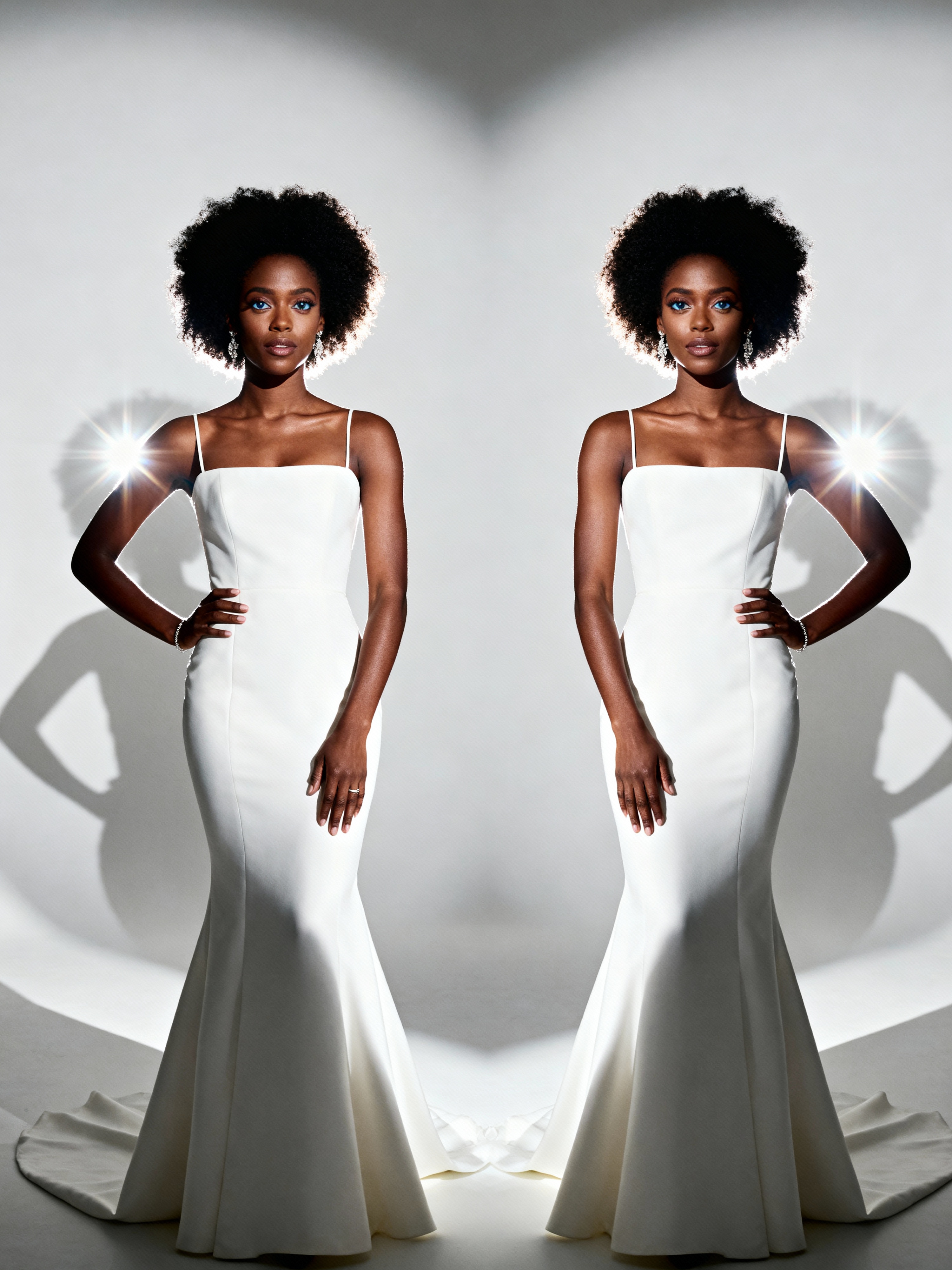 Sophisticated wedding photography, poised with elegance. Model wearing a minimalistic modern bridal gown . Clean and aesthetic composition.