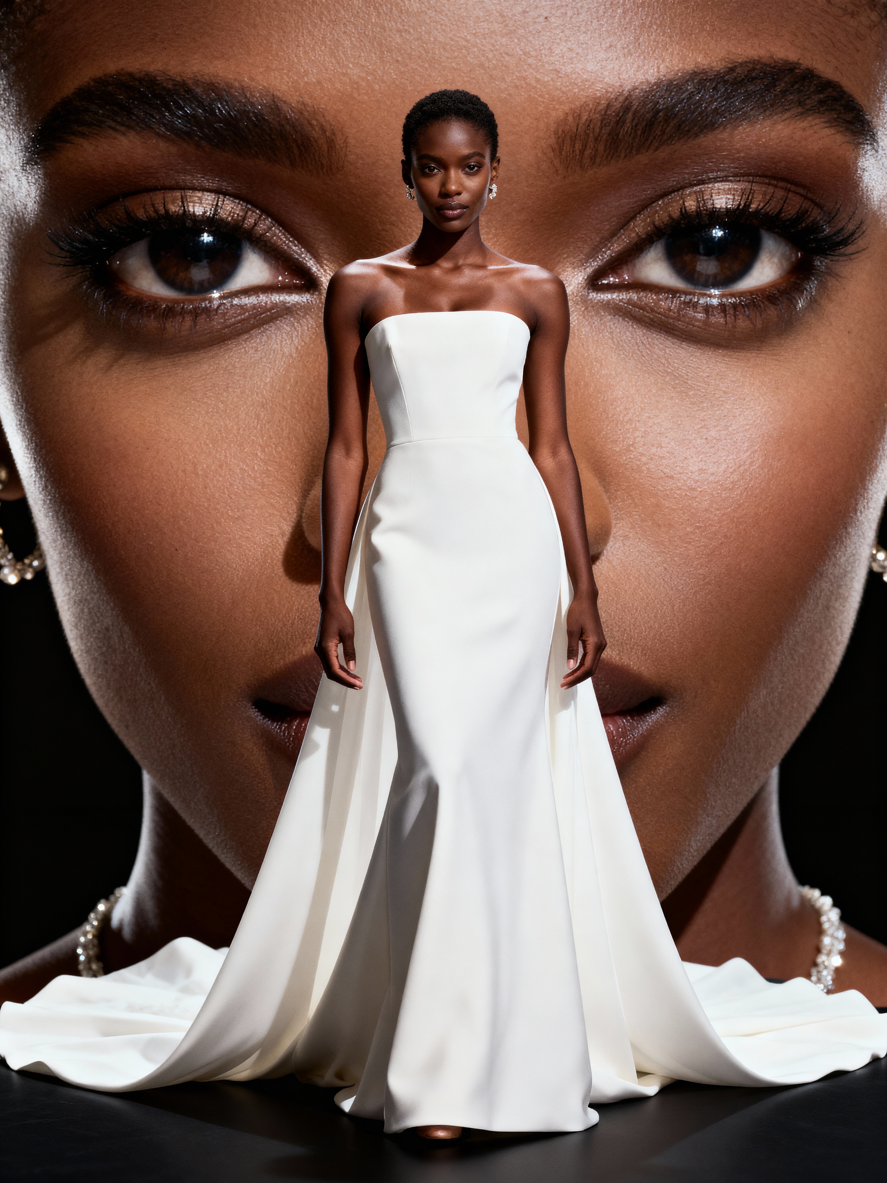Sophisticated wedding photography, poised with elegance. Model wearing a minimalistic modern bridal gown . Clean and aesthetic composition.