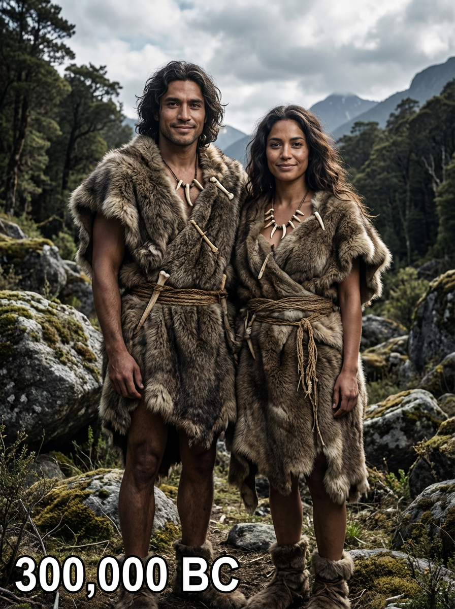 Related photosStone Age couple from 300,000 BC in earliest human clothing -  basic fur coverings, stone tools, rugged appearance, standing together in a primordial landscape with mountains and ancient forests, text overlay in bottom corner reading "300,000 BC" in white sans serif font with black outlineStone Age couple from 300,000 BC in earliest human clothing -  basic fur coverings, stone tools, rugged appearance, standing together in a primordial landscape with mountains and ancient forests, text overlay in bottom corner reading "300,000 BC" in white sans serif font with black outlineStone Age couple from 300,000 BC in earliest human clothing -  basic fur coverings, stone tools, rugged appearance, standing together in a primordial landscape with mountains and ancient forests, text overlay in bottom corner reading "300,000 BC" in white sans serif font with black outlineman as vikingwoman as vikinghandsome and stylish man trying on a sophisticated pinstripe suit with a waistcoat and a burgundy tie
