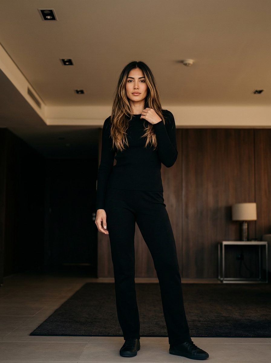 {"subject":{"description":"young model with long, layered dark hair featuring honey highlights and voluminous texture. She has, defined arched eyebrows, and full, soft pink lips slightly parted. She is wearing a tight, black, long-sleeved ribbed crew-neck top. The fabric stretches tightly across the .","anatomical_fidelity":{"bust_volume":"Visibly heavy and prominent volume that dictates the silhouette","bust_shape":"Full, natural shape with evident gravity and projection clearly defined under the tight fabric","proportions":"Exact preservation of the reference image's -to-waist ratio; no reduction in chest mass","fabric_physics":"Ribbed fabric follows the contours of the chest precisely, showing tension and stretch"}},"pose":{"description":"Close-up portrait stance. The subject's head is tilted slightly to her right. Her right hand is raised, with fingers gently touching the hair and upper chest area near the collarbone. The is angled slightly but mostly facing the camera.","gaze":"Direct eye contact with the camera, eyelids slightly lowered in a relaxed expression","orientation":"Frontal upper body shot"},"environment":{"setting":"Modern interior room with low lighting","background_elements":"Beige ceiling, recessed downlight fixtures in the background, dark wooden paneling or door frame behind the subject","context":"Indoor domestic or hotel setting"},"camera":{"shot_type":"Close-up portrait","angle":"Slightly low angle looking up at the subject","focal_length":"35mm to 50mm equivalent","depth_of_field":"Moderate depth of field, background slightly soft but details "},"lighting":{"type":"Overhead artificial lighting","quality":"Soft but directional top-down light","shadows":"Shadows cast under the chin, nose, and jawline; highlighting on the forehead, nose bridge, and upper curvature of the chest","atmosphere":"Warm, indoor ambiance"},"mood_and_expression":{"emotion":"Confident, sultry, relaxed","atmosphere":"Quiet confidence, casual but polished"},"style_and_realism":{"aesthetic":"Raw photo-realism, unpolished social media aesthetic","fidelity":"100% adherence to reference anatomy and lighting","texture":" skin texture, fabric weave of the ribbed shirt, individual hair strands"},"colors_and_tone":{"palette":"Neutral tones, clothing, beige background, warm skin tones, hair","contrast":"Medium contrast with deep blacks in the clothing and background shadows","color_grading":"Natural indoor warm cast"},"quality_and_technical_details":{"resolution":"High resolution","sharpness":"Sharp focus on eyes and face","noise":"Slight ISO grain consistent with indoor lighting"},"aspect_ratio_and_output":{"ratio":"3:4","orientation":"Portrait"},"controlnet":{"pose_control":{"woman_type":"OpenPose","purpose":"Exact skeletal and pose lock","constraints":["preserve shoulder width","preserve head tilt angle","preserve right hand placement on chest","preserve finger positioning"],"recommended_weight":1},"depth_control":{"woman_type":"MiDaS","purpose":"Depth, volume, and camera-to-body spatial lock","constraints":["preserve chest foreground dominance","prevent flat or compressed depth","maintain clear -to-background separation"],"recommended_weight":0.8}},"negative_prompt":{"forbidden_content":["anatomy normalization","body proportion averaging","smaller than reference","reduced chest volume","flattened or compressed ","tightened, lifted, or artificially supported ","slimmed ","aesthetic proportion correction","beauty standard enforcement","dataset-average model anatomy","camera angles that reduce volume","wide-angle distortion not in reference","lens compression not in reference","cropping that removes volume","depth flattening","mirror selfies","phone-in-hand selfies","reflections","beautification filters","skin smoothing","plastic skin","airbrushed texture","stylized realism","editorial fashion proportions","more realistic reinterpretation","naturalization of prominent features"]}}
