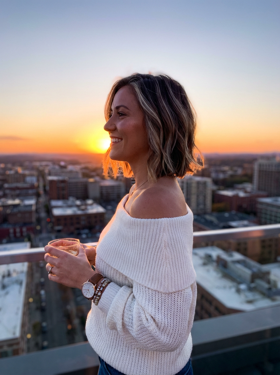 sunset-lover feminine model enjoying a golden-hour skyline
