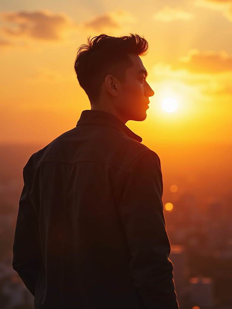 sunset-lover masculine model enjoying a golden-hour skyline