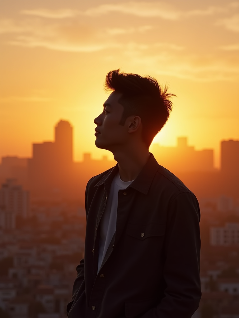sunset-lover masculine model enjoying a golden-hour skyline