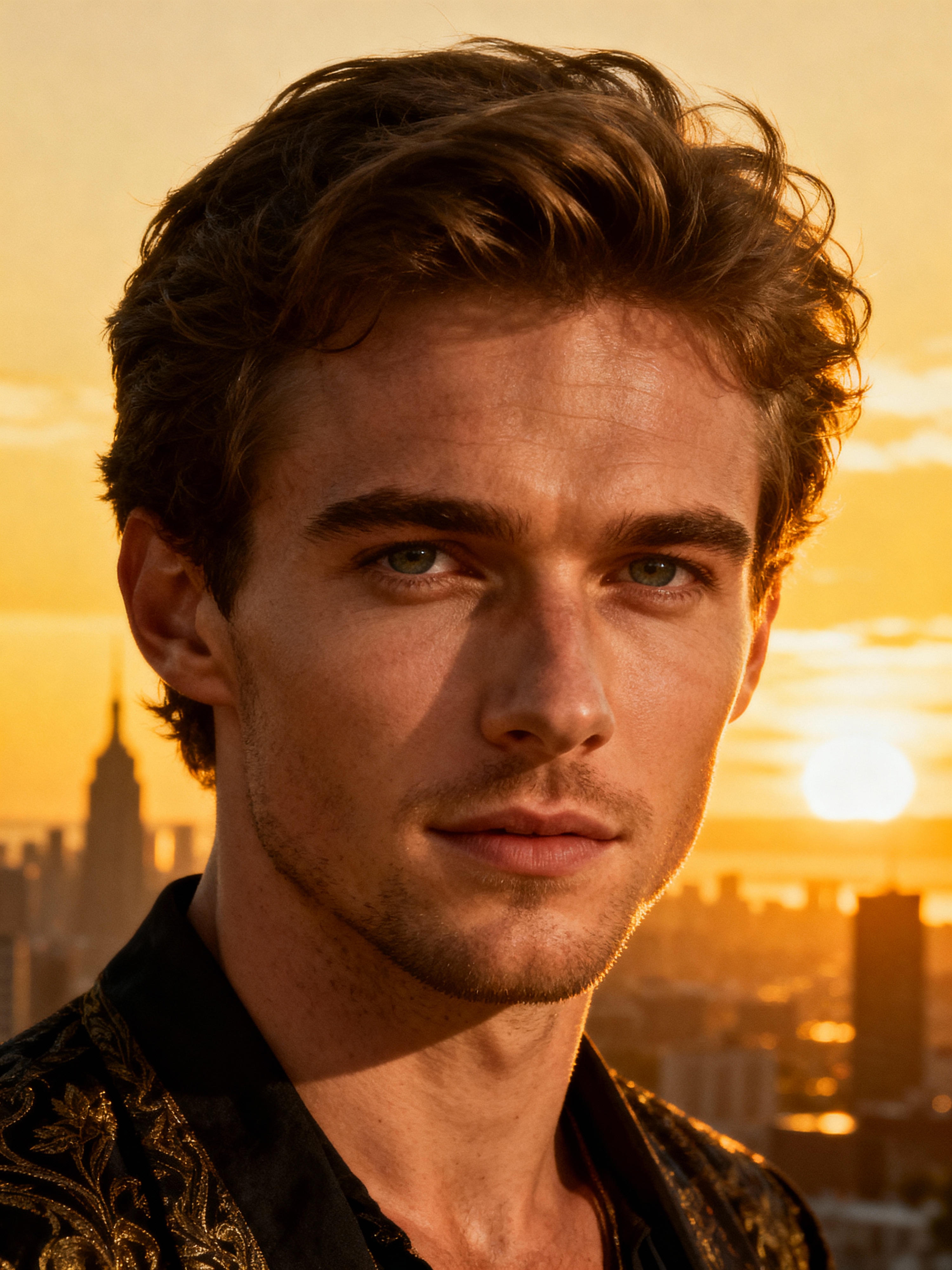 sunset-lover masculine model enjoying a golden-hour skyline