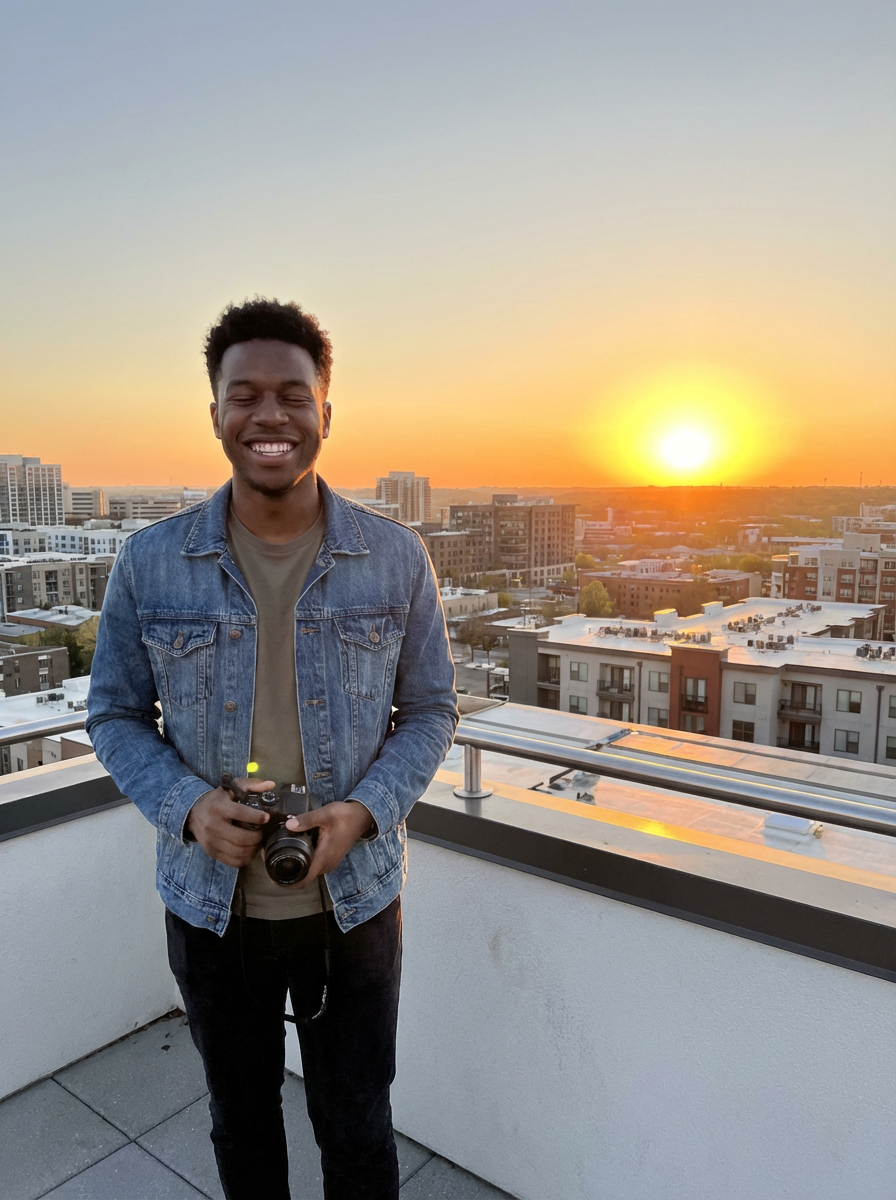sunset-lover masculine model enjoying a golden-hour skyline