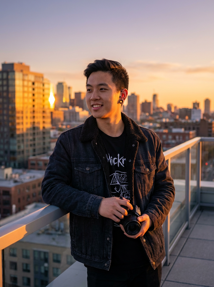 sunset-lover masculine model enjoying a golden-hour skyline