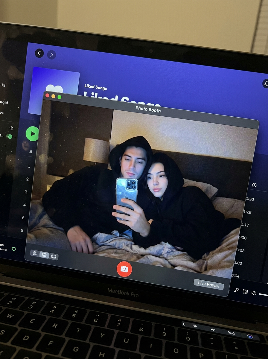 {"task_configuration":{"task_type":"screen_simulation_photorealism","target_woman":"SDXL_1.0_Refiner","aspect_ratio":"3:4","resolution":{"width":1152,"height":1536}},"visual_hierarchy":{"layer_1_physical_macro":{"camera_angle":"Downward-angled, high-angle","framing":"MacBook screen filling 95% of frame","surface_imperfections":["subtle pixel-grid texture (moire)","tiny dust particles on glass","faint ambient light reflection on glossy screen","fingerprint smudges"],"foreground_anchor":"Thin strip of physical keyboard visible at lower edge"},"layer_2_digital_interface":{"theme":"Dark Mode (macOS)","window_layout":{"left_panel":"Spotify Liked Songs playlist (dimmed)","right_panel":"Photo Booth live-preview window (dominant focus)"}},"layer_3_nested_subject_content":{"context":"Inside the Photo Booth window","environment":"Dim bedroom, off-plain background, rumpled bedding","lighting_simulation":"Cool screen glow mixed with warm skin tones, deep nocturnal shadows","subjects":{"shared_attributes":["Oversized black hoodies","Hoods pushed back (faces fully visible)","Reclining pose","Looking at screen"],"subject_a_guy":{"identity_target":"reference_image_male.jpg","action":"Holding phone in right hand with clear reflective case","position":"Right/Center"},"subject_b_girl":{"identity_target":"reference_image_female.jpg","action":"Resting closely beside Subject A","position":"Left/Center"}}}},"prompt_assembly":{"positive_prompt":"Hyper-realistic downward shot of a MacBook screen. The screen surface has visible dust, pixel grid, and reflection. The screen displays a Photo Booth window showing a couple in a dark room. [Subject Descriptions]. They are wearing black hoodies. The lighting is low-key, candid, nocturnal, blue-ish screen glow. High fidelity, raw photo, unedited.","negative_prompt":"vector art, screenshot, flat digital image, clean glass, perfect screen, daylight, bright studio lights, cartoon, 3d render, painting, watermark"},"identity_preservation_settings":{"strictness_level":"CRITICAL","methodology":{"face_restoration":false,"note":"Disable generic face restorers (CodeFormer) to avoid plastic look. Use IP-Adapter.","control_net_stack":[{"unit":"ControlNet_Tile","weight":0.4,"purpose":"To maintain the text/interface sharpness"},{"unit":"IP-Adapter_FaceID_Plus","weight":0.95,"region_mask":"Photo Booth Window Area Only","purpose":"To force exact facial identity match for both subjects"}]}},"rendering_parameters":{"sampler":"DPM++ 3M SDE Exponential","steps":40,"cfg_scale":5.5,"denoising_strength":0.35}}