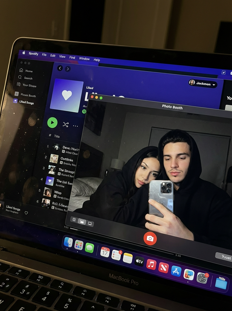 {"task_configuration":{"task_type":"screen_simulation_photorealism","target_woman":"SDXL_1.0_Refiner","aspect_ratio":"3:4","resolution":{"width":1152,"height":1536}},"visual_hierarchy":{"layer_1_physical_macro":{"camera_angle":"Downward-angled, high-angle","framing":"MacBook screen filling 95% of frame","surface_imperfections":["subtle pixel-grid texture (moire)","tiny dust particles on glass","faint ambient light reflection on glossy screen","fingerprint smudges"],"foreground_anchor":"Thin strip of physical keyboard visible at lower edge"},"layer_2_digital_interface":{"theme":"Dark Mode (macOS)","window_layout":{"left_panel":"Spotify Liked Songs playlist (dimmed)","right_panel":"Photo Booth live-preview window (dominant focus)"}},"layer_3_nested_subject_content":{"context":"Inside the Photo Booth window","environment":"Dim bedroom, off-plain background, rumpled bedding","lighting_simulation":"Cool screen glow mixed with warm skin tones, deep nocturnal shadows","subjects":{"shared_attributes":["Oversized black hoodies","Hoods pushed back (faces fully visible)","Reclining pose","Looking at screen"],"subject_a_guy":{"identity_target":"reference_image_male.jpg","action":"Holding phone in right hand with clear reflective case","position":"Right/Center"},"subject_b_girl":{"identity_target":"reference_image_female.jpg","action":"Resting closely beside Subject A","position":"Left/Center"}}}},"prompt_assembly":{"positive_prompt":"Hyper-realistic downward shot of a MacBook screen. The screen surface has visible dust, pixel grid, and reflection. The screen displays a Photo Booth window showing a couple in a dark room. [Subject Descriptions]. They are wearing black hoodies. The lighting is low-key, candid, nocturnal, blue-ish screen glow. High fidelity, raw photo, unedited.","negative_prompt":"vector art, screenshot, flat digital image, clean glass, perfect screen, daylight, bright studio lights, cartoon, 3d render, painting, watermark"},"identity_preservation_settings":{"strictness_level":"CRITICAL","methodology":{"face_restoration":false,"note":"Disable generic face restorers (CodeFormer) to avoid plastic look. Use IP-Adapter.","control_net_stack":[{"unit":"ControlNet_Tile","weight":0.4,"purpose":"To maintain the text/interface sharpness"},{"unit":"IP-Adapter_FaceID_Plus","weight":0.95,"region_mask":"Photo Booth Window Area Only","purpose":"To force exact facial identity match for both subjects"}]}},"rendering_parameters":{"sampler":"DPM++ 3M SDE Exponential","steps":40,"cfg_scale":5.5,"denoising_strength":0.35}}