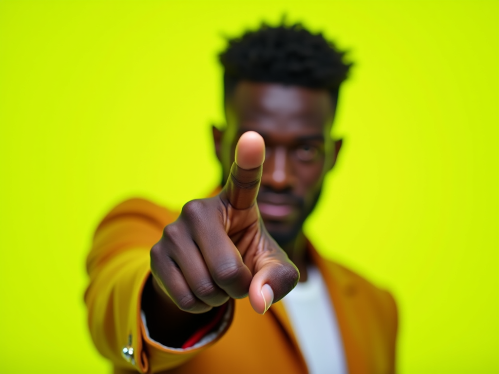 the image is a vibrant and colorful thumbnail, typically used for a youtube video. model with finger pointing at camera, dramatic pose, bright plain lime background