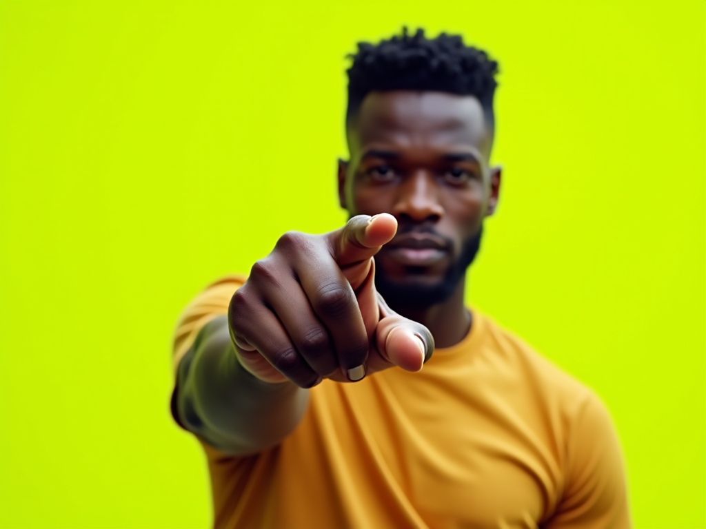 the image is a vibrant and colorful thumbnail, typically used for a youtube video. model with finger pointing at camera, dramatic pose, bright plain lime background