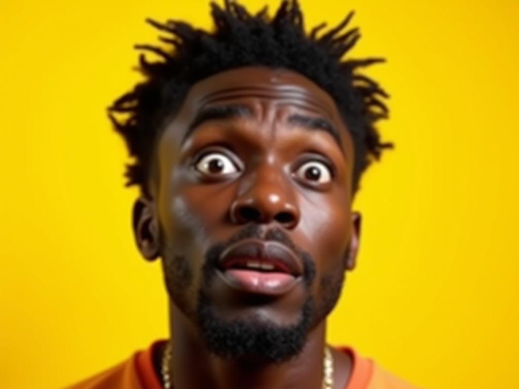 the image is a vibrant and colorful thumbnail, typically used for a youtube video. model with raised eyebrows and wide eyes, shocked expression, bright plain yellow background