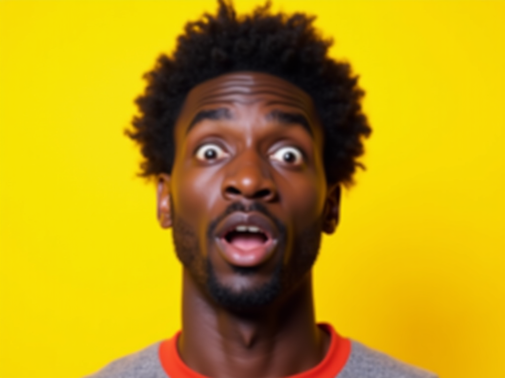 the image is a vibrant and colorful thumbnail, typically used for a youtube video. model with raised eyebrows and wide eyes, shocked expression, bright plain yellow background