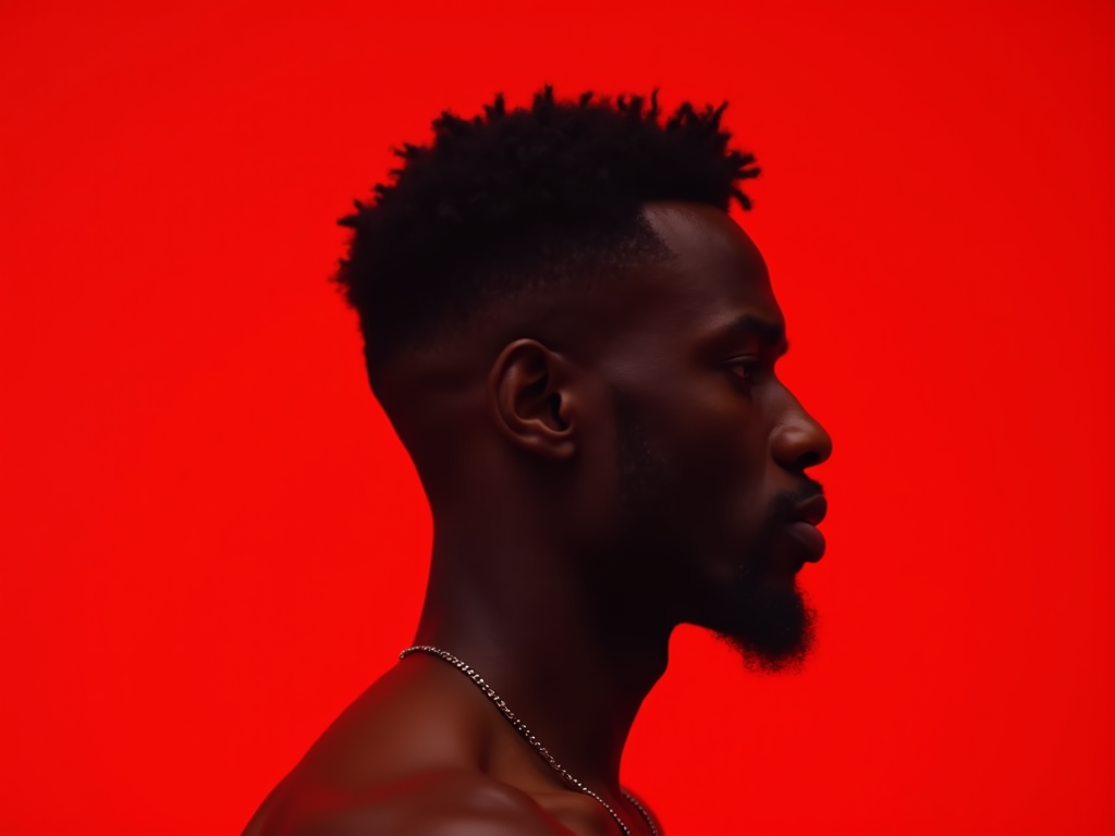 the image is a vibrant and colorful thumbnail, typically used for a youtube video. looking away, looking aside, gazing off model, bright plain red background