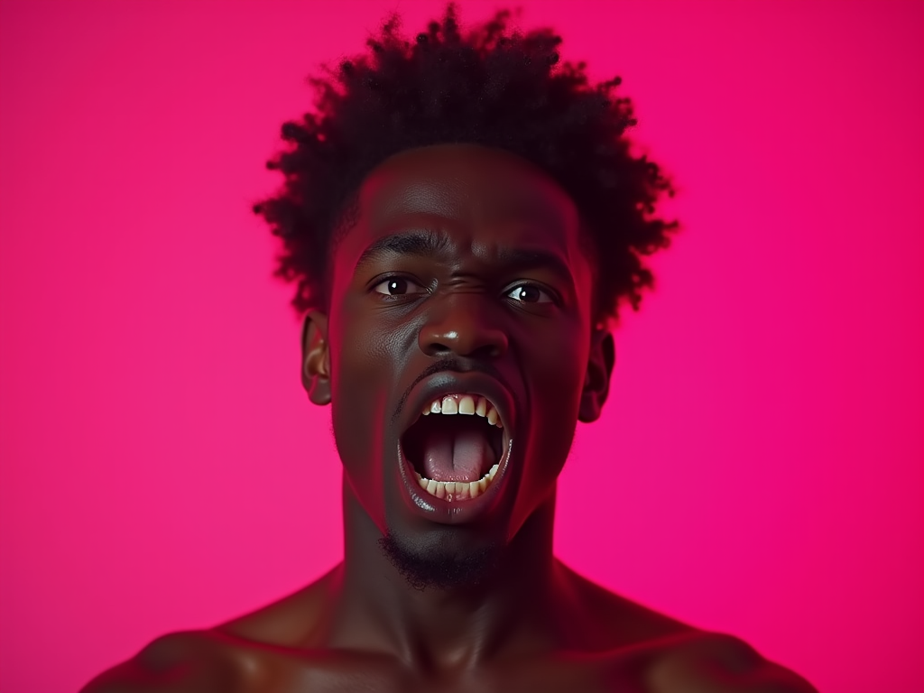 the image is a vibrant and colorful thumbnail, typically used for a youtube video. exaggerated feels disgusted repulsed revolted nauseated sickened appalled horrified model, bright plain magenta background
