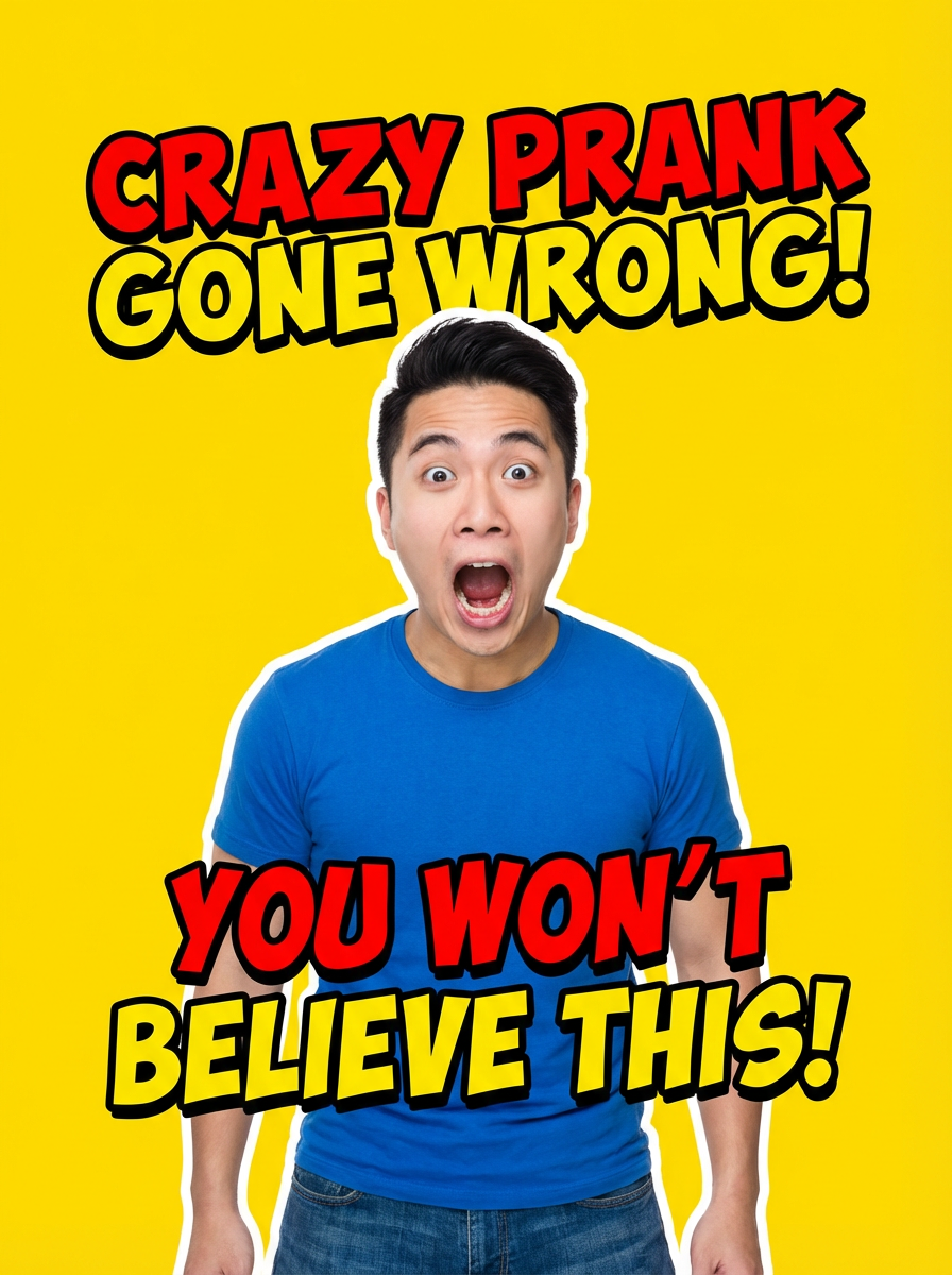 the image is a vibrant and colorful thumbnail, typically used for a youtube video. it features the exaggerated face of one model expressing shock and humor, emphasizing the crazy theme of the video. their face is outlined with a white stroke to make it stand out against the yellow background. this type of design is commonly used to attract viewers on social media platforms by promising entertaining and possibly awkward content.